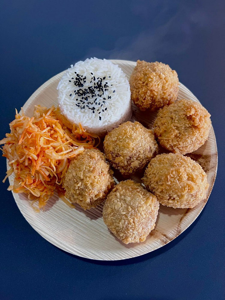 W tej opcji komponujesz danie według własnych preferencji. Otrzymujesz porcję aromatycznego ryżu z chrupiącą surówką, a następnie wybierasz: